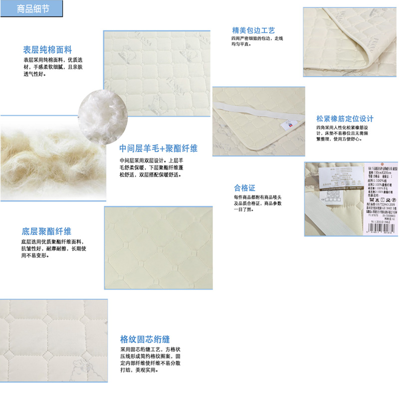 羊毛保暖床垫 橡筋款(床垫1件)(适合1.5米床)【面料:聚酯纤维;填充:羊毛+聚酯纤维/米黄】
