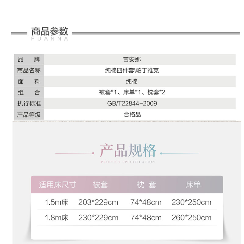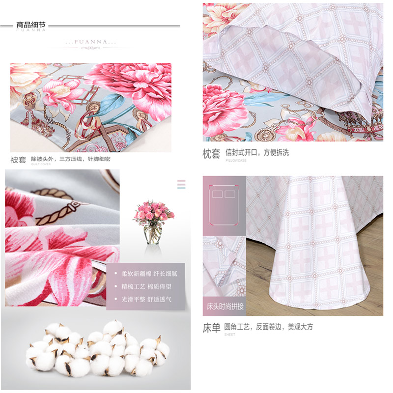 帕丁雅克 床单四件套(被套1件床单1件枕套2件)(适合1.8米床)【40支纯棉/花色】