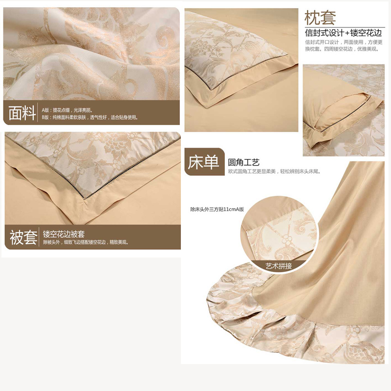 广岛之恋 床单四件套(被套1件 床单1件 枕套2件)(适合1.8米床)【面料1:涤粘提花;面料2纯棉/黄】