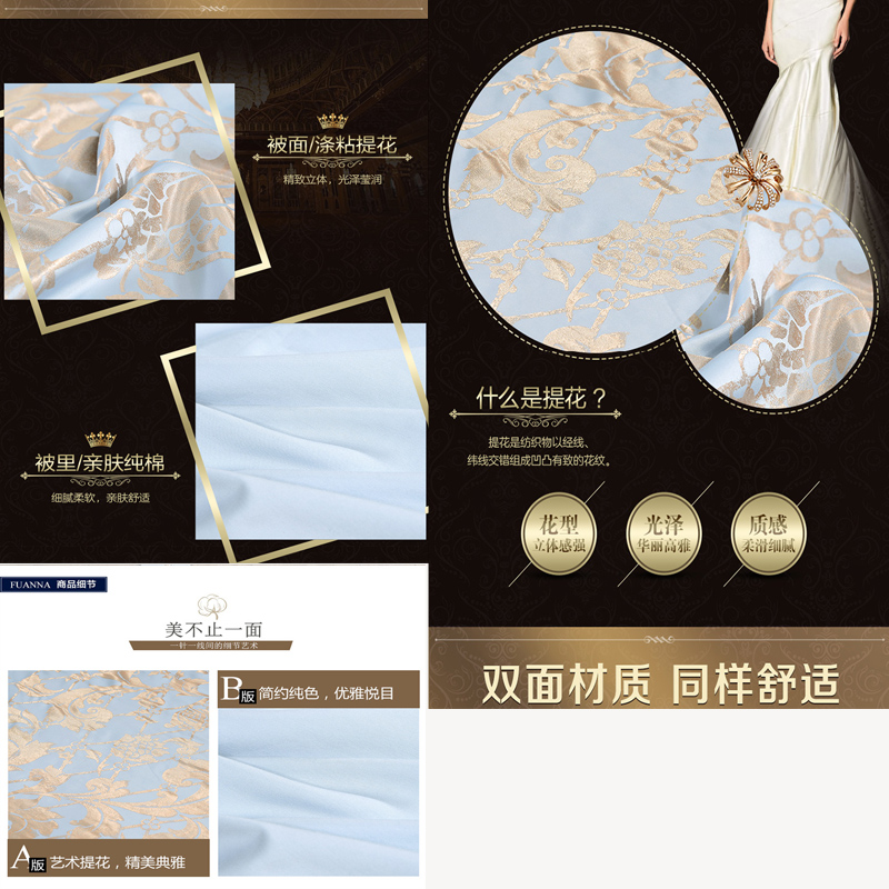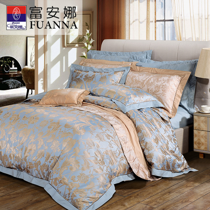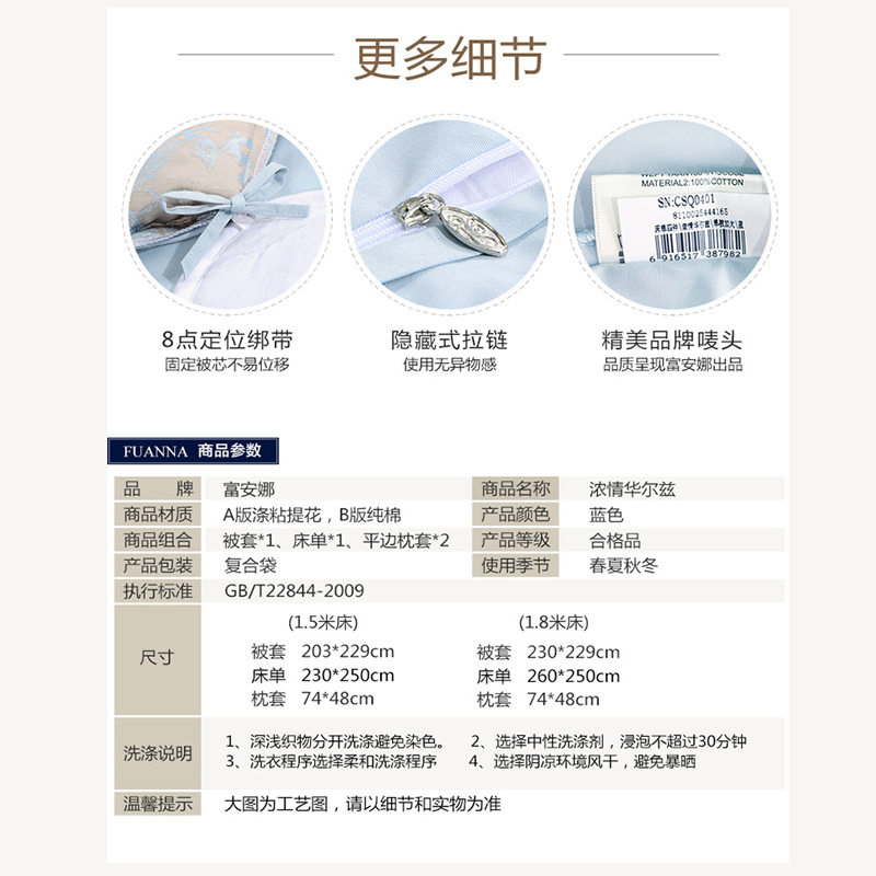 浓情华尔兹 床单四件套(被套1件 床单1件 枕套2件)(适合1.5米床)【涤粘提花/蓝】