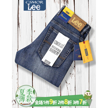 CSMOR LEE牛仔裤男裤官方春夏季薄款蓝灰色直筒修身商务休闲长裤 蓝灰色 31