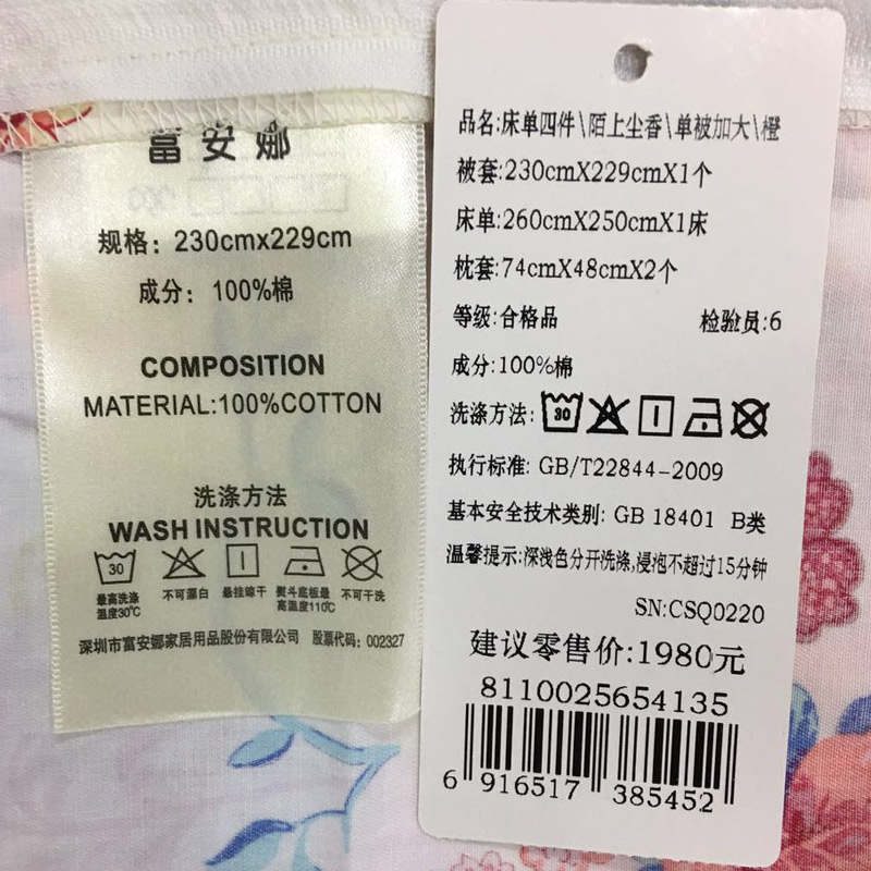 陌上尘香床单四件套(适用1.8米床)(被套1件床单1件枕套2件)【高支高密棉/橙】