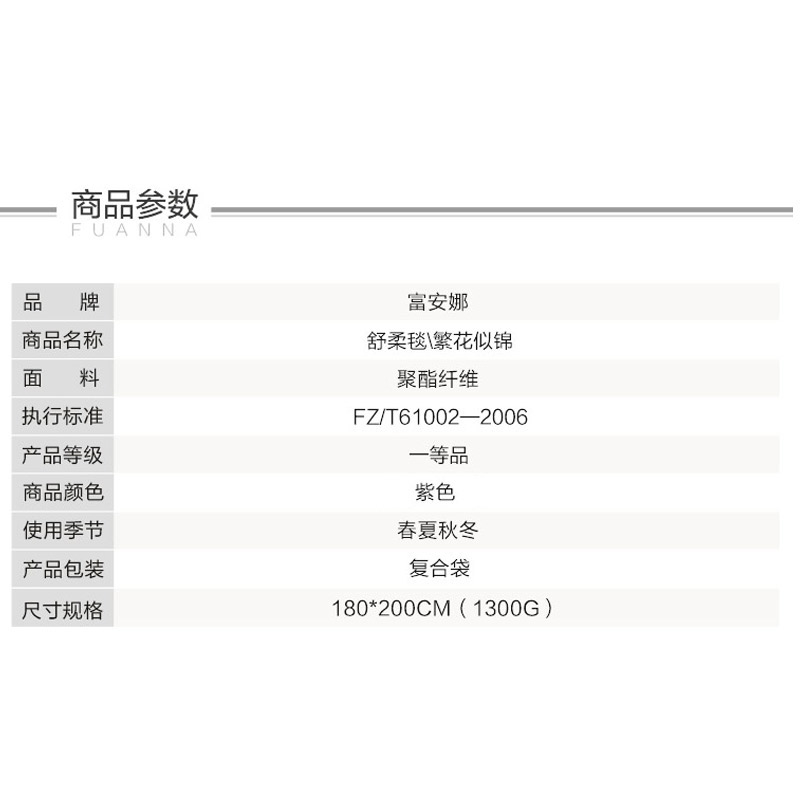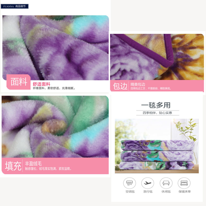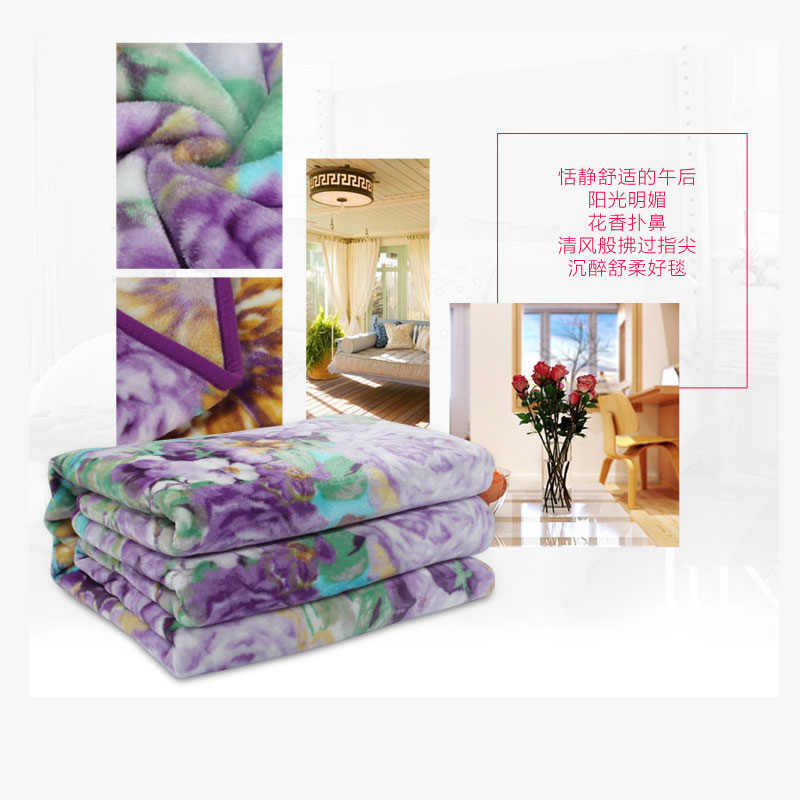 繁花似锦舒柔毯(适用1.5/1.8米床)(舒柔毯1件)【材质:聚酯纤维;克重1300克/紫】