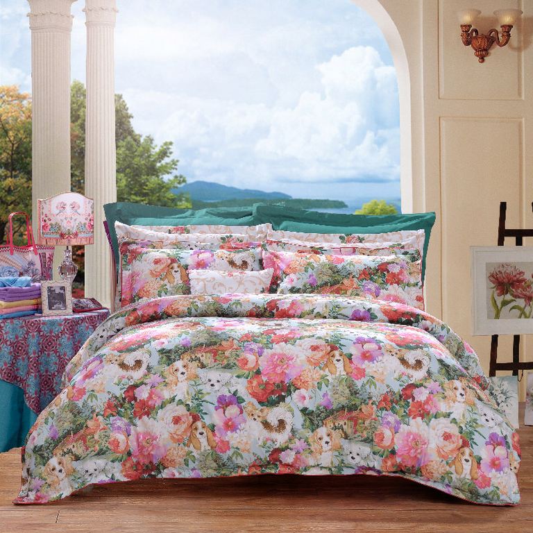 萌宠庄园床单四件套(适用1.5米床)(被套一件床单一件枕套两件)【100%棉/粉】
