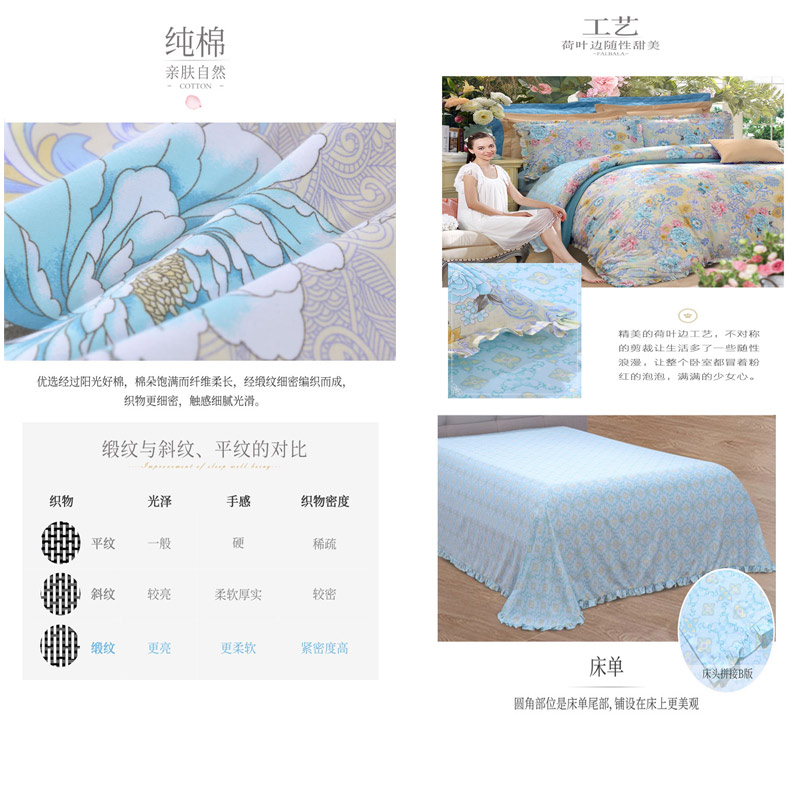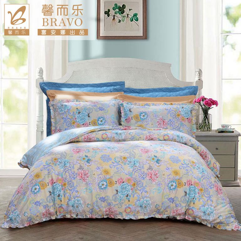 印花舒适四件套(被套一件床单一件枕套两件)(适用1.8-2.0米床)【纯棉缎纹/花色】