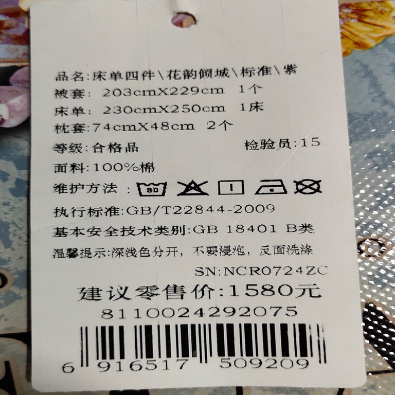 花韵倾城印花四件套(被套一件床单一件枕套两件)(适用1.5米床)【纯棉/紫】