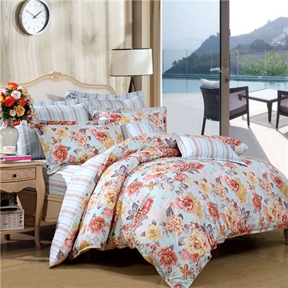 梦中爱丽丝床单四件套(被套一件床单一件枕套两件)(适用1.5米床)【100%棉/蓝】