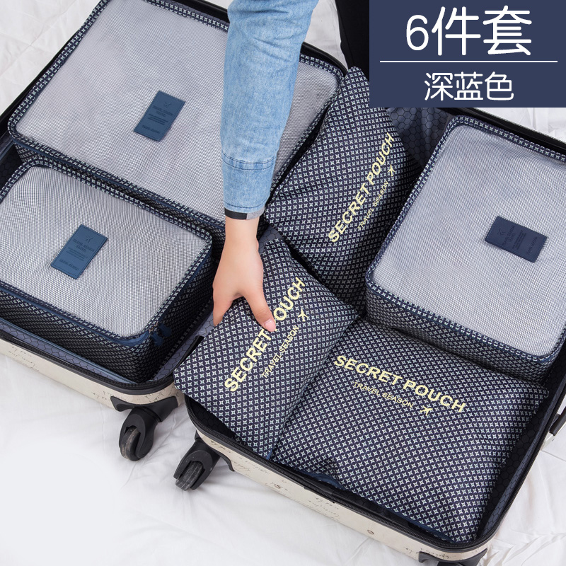 旅行收纳袋六件套【涤纶/四角星-深蓝】
