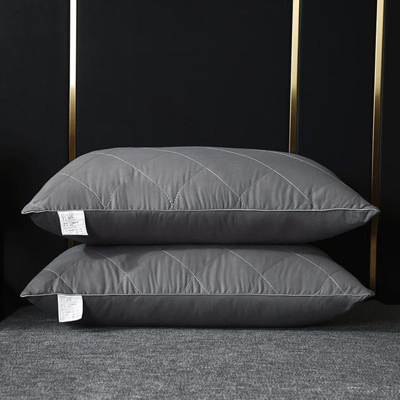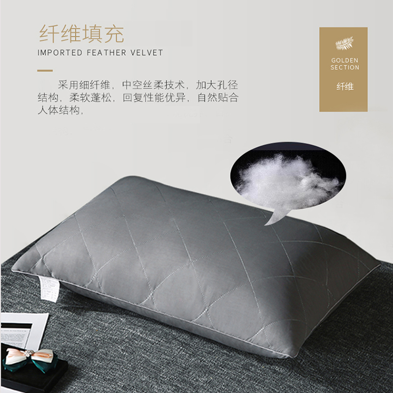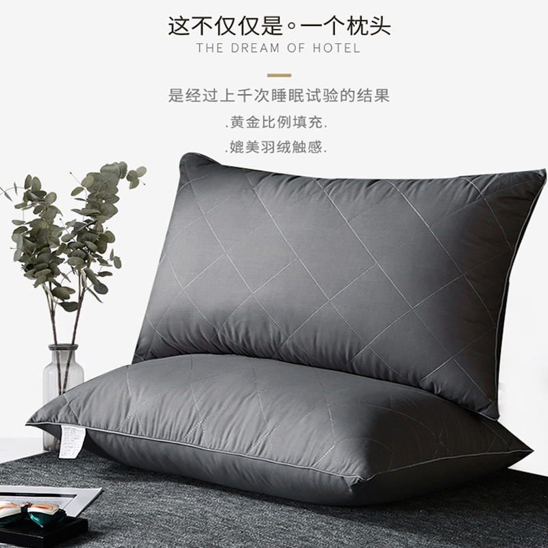 全棉大方格枕芯羽丝绒枕头【面料全棉填充羽丝绒/全棉灰色】