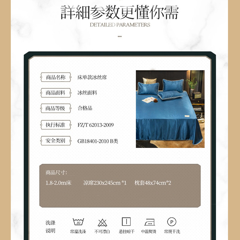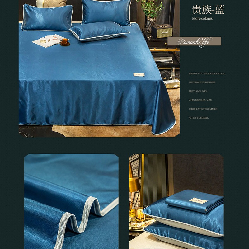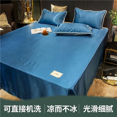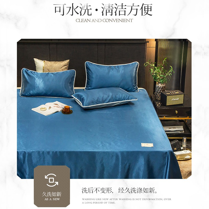 无印纯色床单款冰丝凉席三件套可机洗【冰丝面料(聚酯纤维)/贵族-蓝】