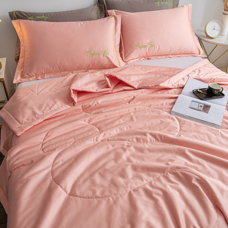纯色刺绣水洗冰丝大豆纤维夏被【水洗冰丝(聚酯纤维)填充大豆纤维/泫雅玉】