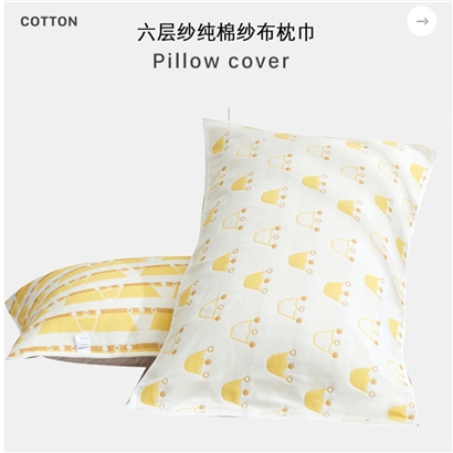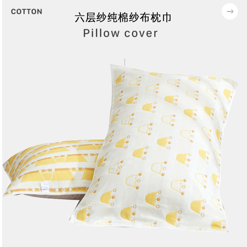 高品质A类全棉六层纱布枕巾一对【长绒棉/枕巾-皇冠金】