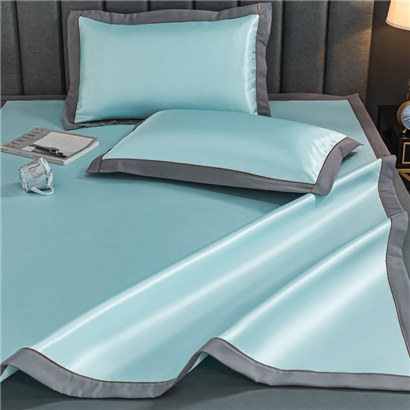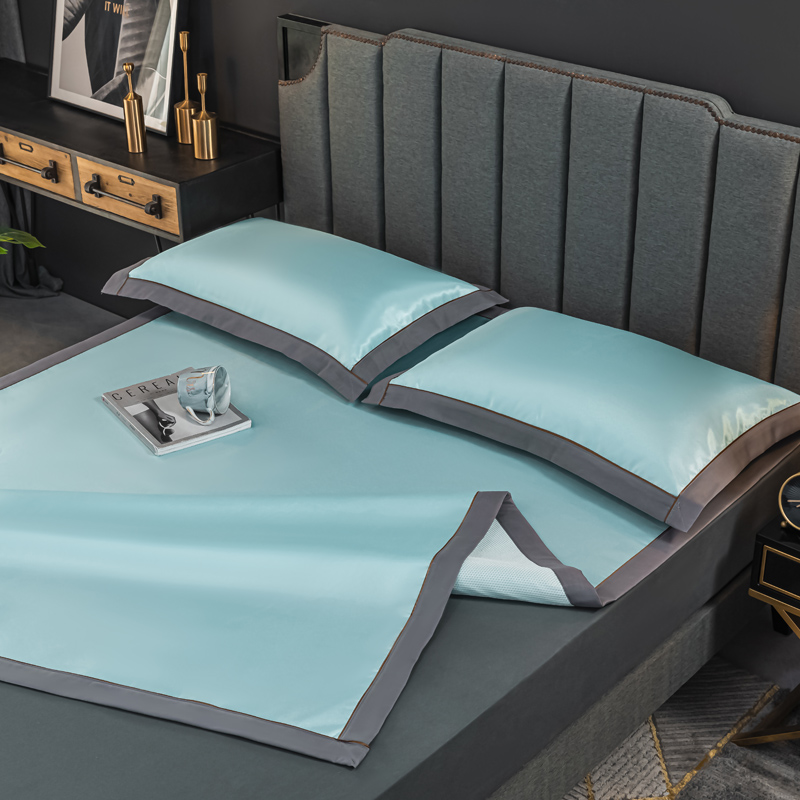 轻奢600D冰丝加厚三明治凉席三件套【聚酯纤维/三明治冰丝水绿】