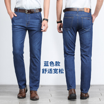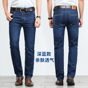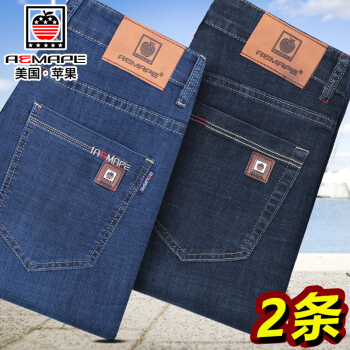AEMAPE苹果牛仔裤男春夏季宽松直筒弹力男裤子商务休闲夏天薄款中年 25款深蓝+04款蓝黑 【2条春秋款】 28码【腰围2尺1】