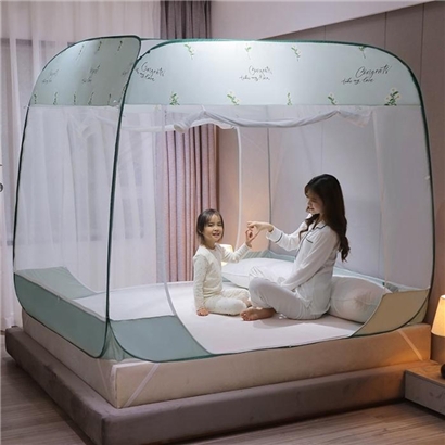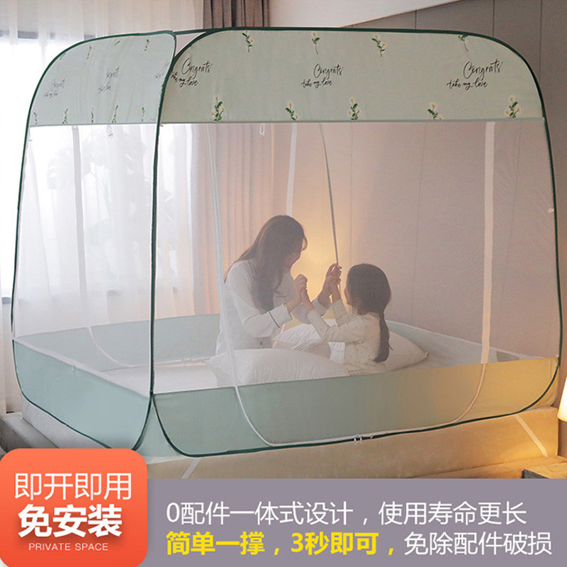 大顶部印花款免安装蚊帐【面料聚酯纤维支架包塑钢丝/小雏菊水绿】