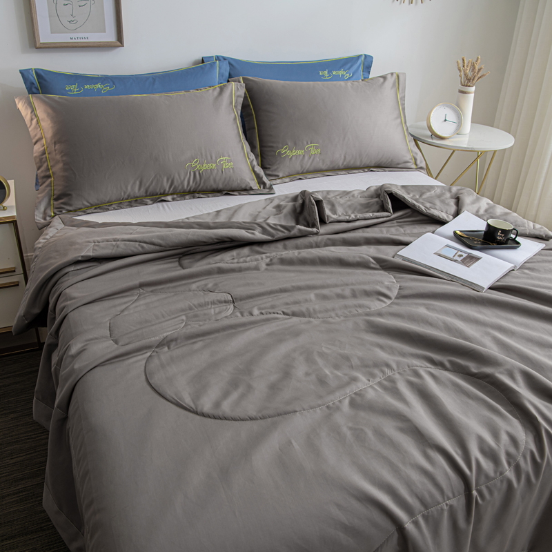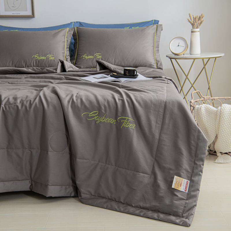 纯色刺绣水洗冰丝大豆纤维夏被【水洗冰丝(聚酯纤维)填充大豆纤维/太空灰】