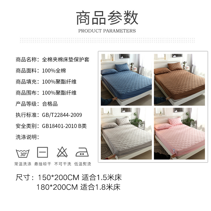 全棉夹棉绗缝定位床垫保护床笠可机洗【面料:13372全棉 填充:聚酯纤维/颜色可选】