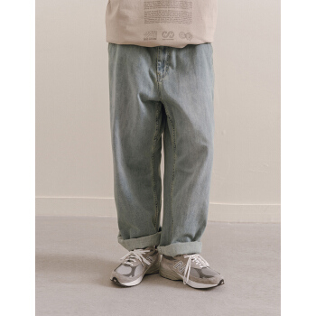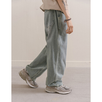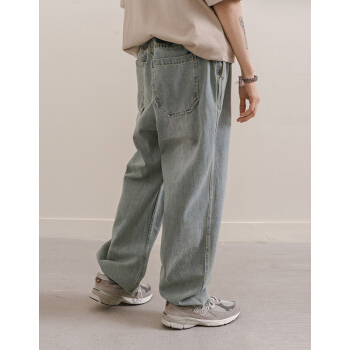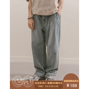 NOTHOMME潮牌春季矿工洗水浅色基本款牛仔裤男士宽松直筒休闲长裤 水洗蓝 L