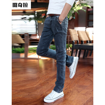 璐奇拉2020春夏新款牛仔裤男韩版时尚弹力修身小脚裤 男士休闲长裤子 蓝灰色 30 2尺3