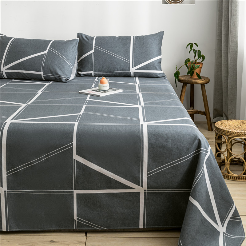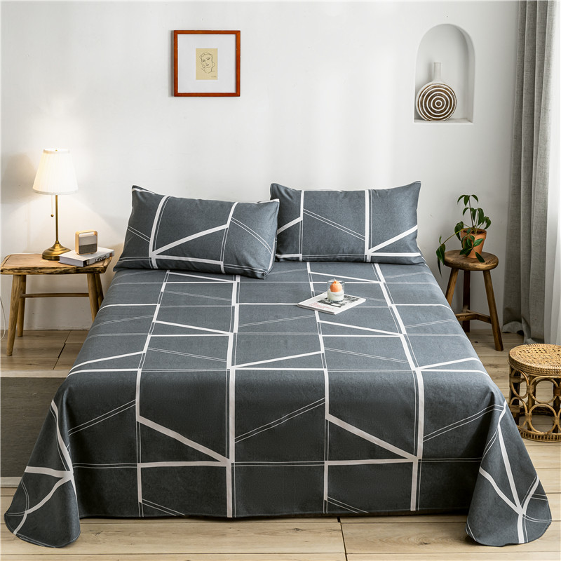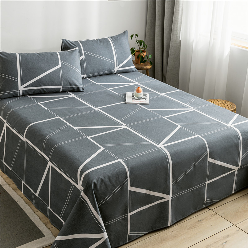 全棉麻空调软凉席老粗布床单三件套【棉/几何旋律】