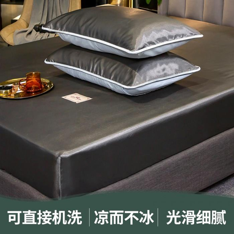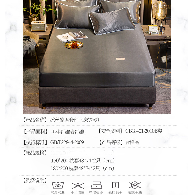 【柔软清爽 凉而不冰】无印床笠款冰丝席三件套【冰丝面料(聚酯纤维)/贵族-深灰】