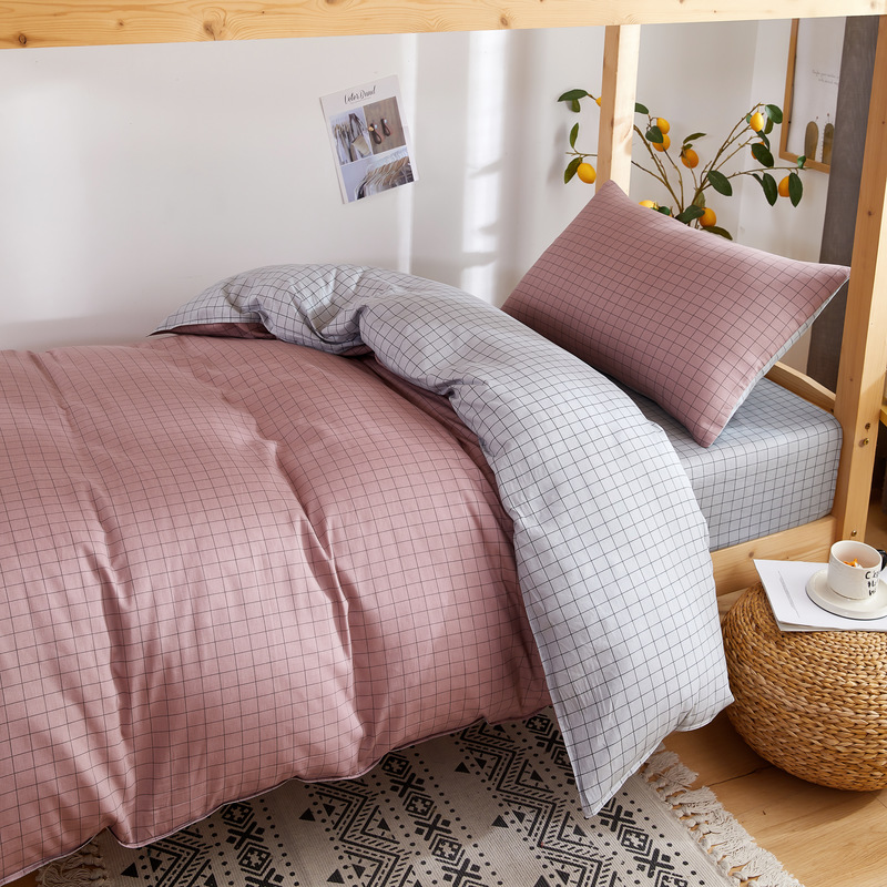 【AB版双面可用】学生宿舍高密全棉印花三件套【13070全棉/罗马假日粉】