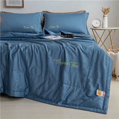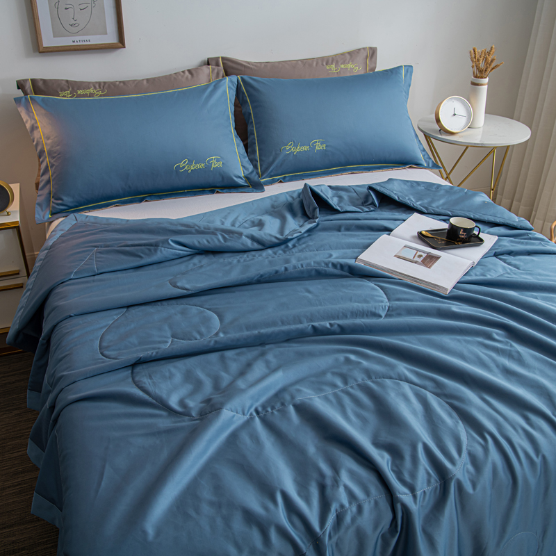 纯色刺绣水洗冰丝大豆纤维夏被【水洗冰丝(聚酯纤维)填充大豆纤维/雾霾蓝】