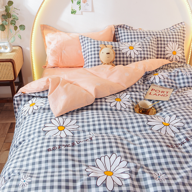 ins清新风AB版简约全棉四件套【全棉/野菊花开】