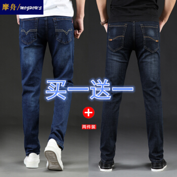 2条装】牛仔裤男 薄款夏季男士长裤商务弹力韩版修身青年直筒宽松大码牛仔裤长裤子 【009蓝色+021黑色】2条装 32 |
