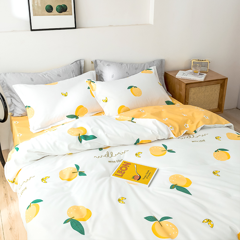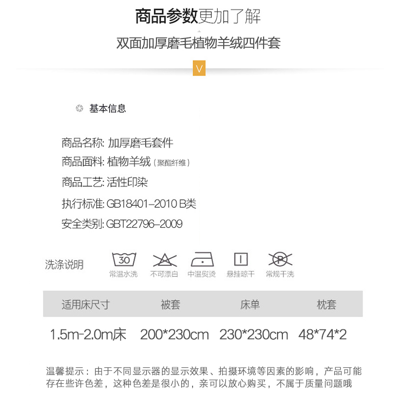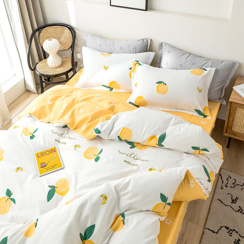 双面加厚磨毛植物羊绒四件套【植物羊绒/金色果实】