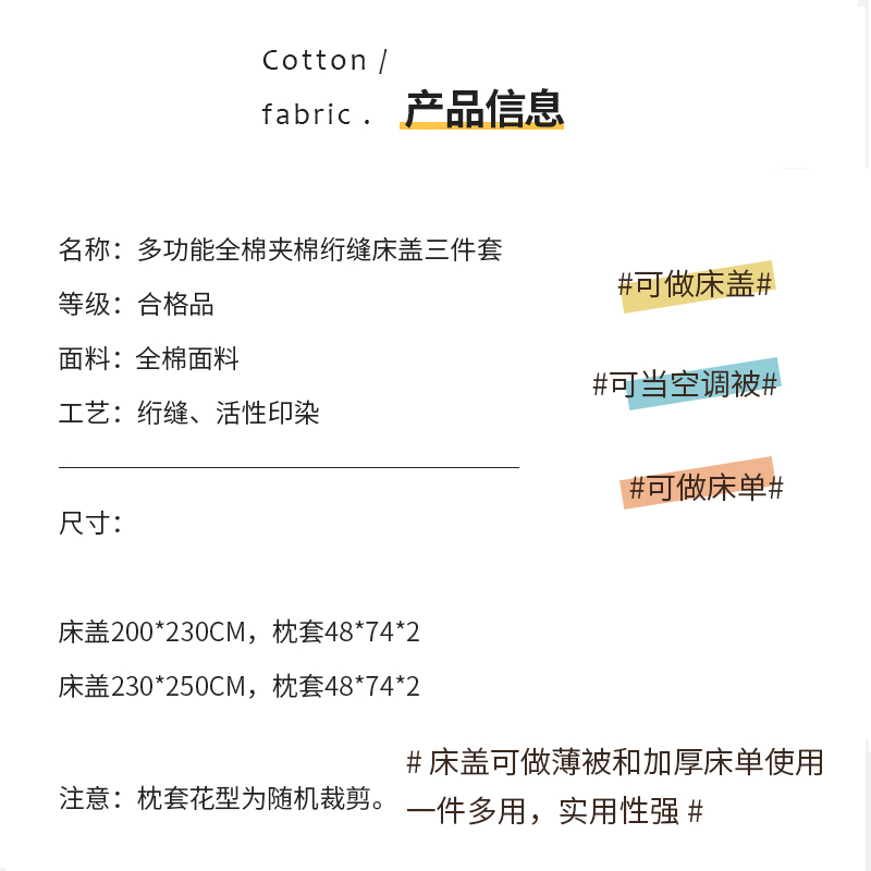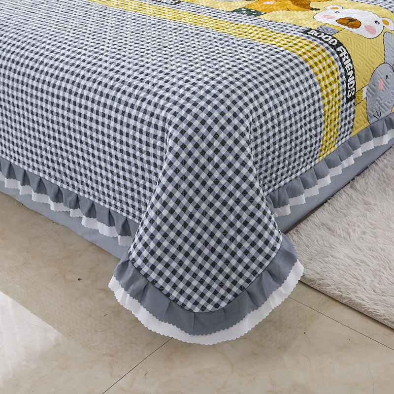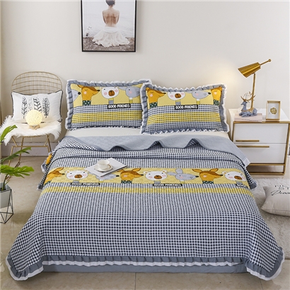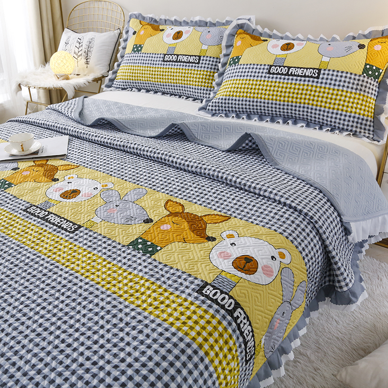 【三层复合】全棉夹棉绗缝床盖三件套【全棉/小可爱灰】