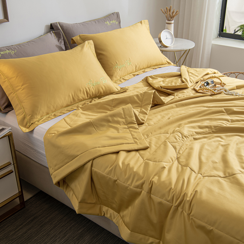 纯色刺绣水洗冰丝大豆纤维夏被【水洗冰丝(聚酯纤维)填充大豆纤维/麦穗黄】