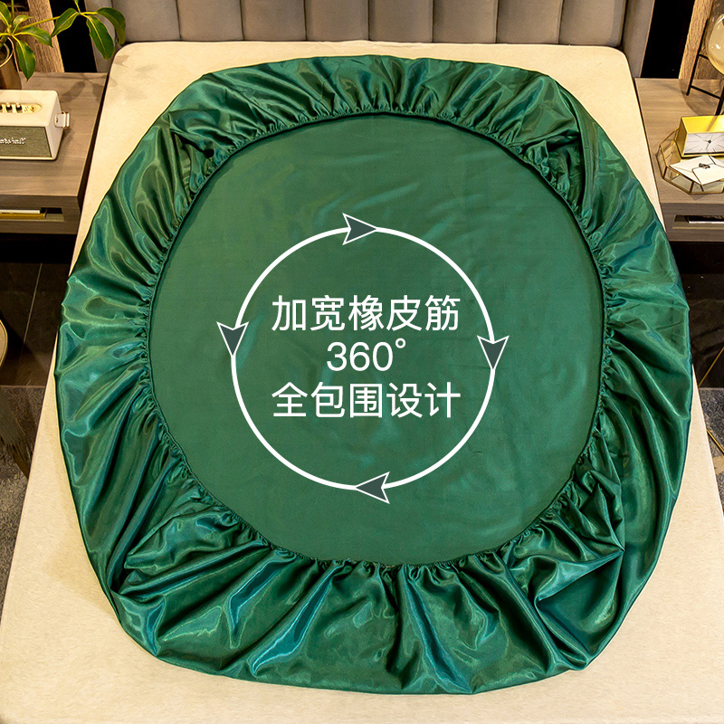 【柔软清爽 凉而不冰】无印床笠款冰丝席三件套【冰丝面料(聚酯纤维)/贵族-绿】