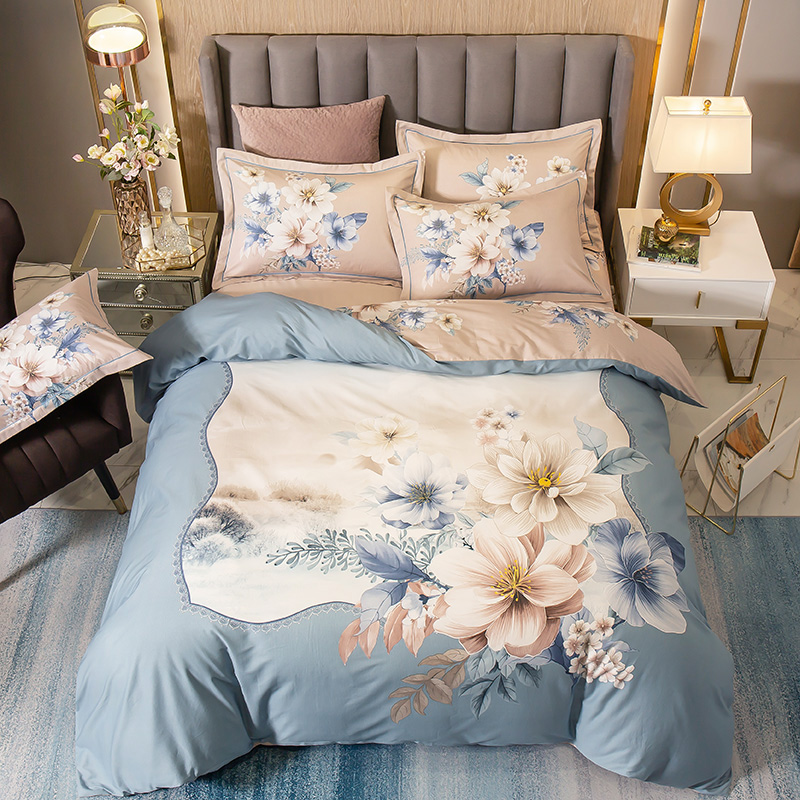 奢华大版匹马棉全棉四件套【133*72全棉/卷轻霜绿】