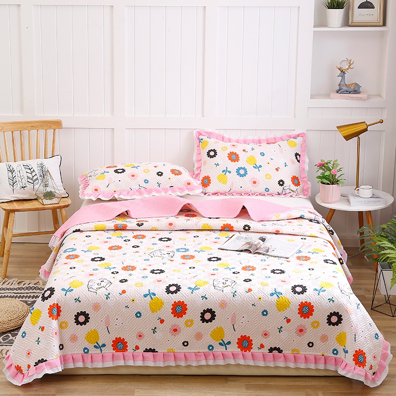 【三层复合】全棉夹棉绗缝床盖三件套【全棉/小花猫】