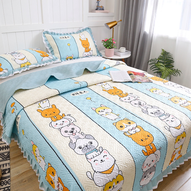 【三层复合】全棉夹棉绗缝床盖三件套【全棉/汪星人】