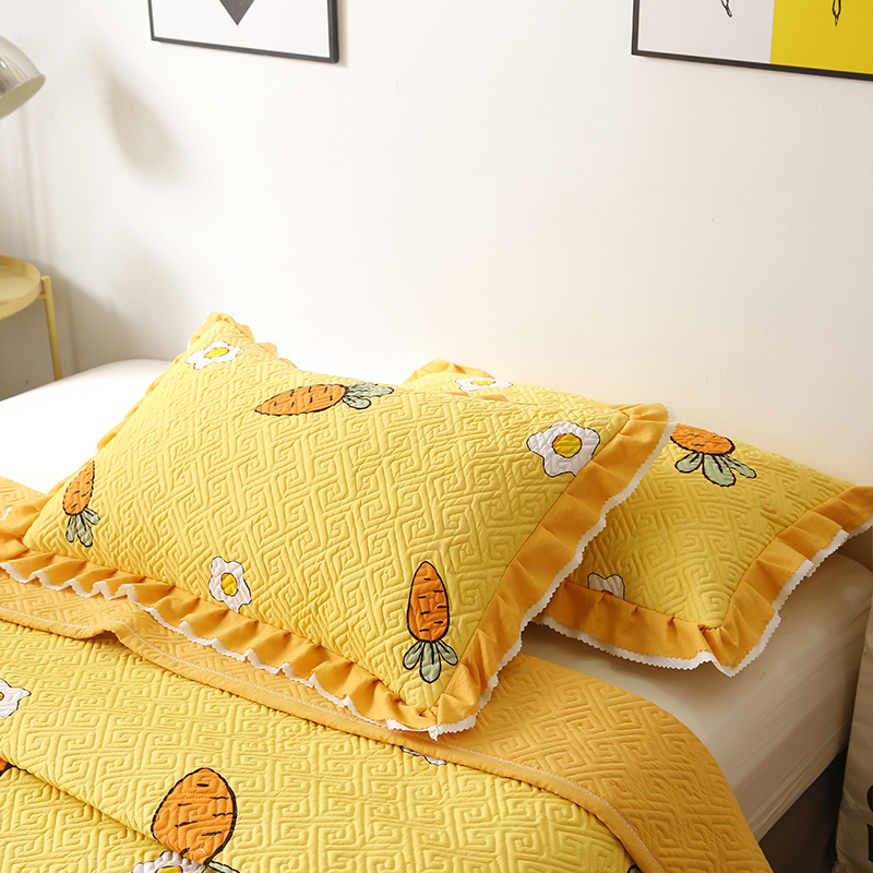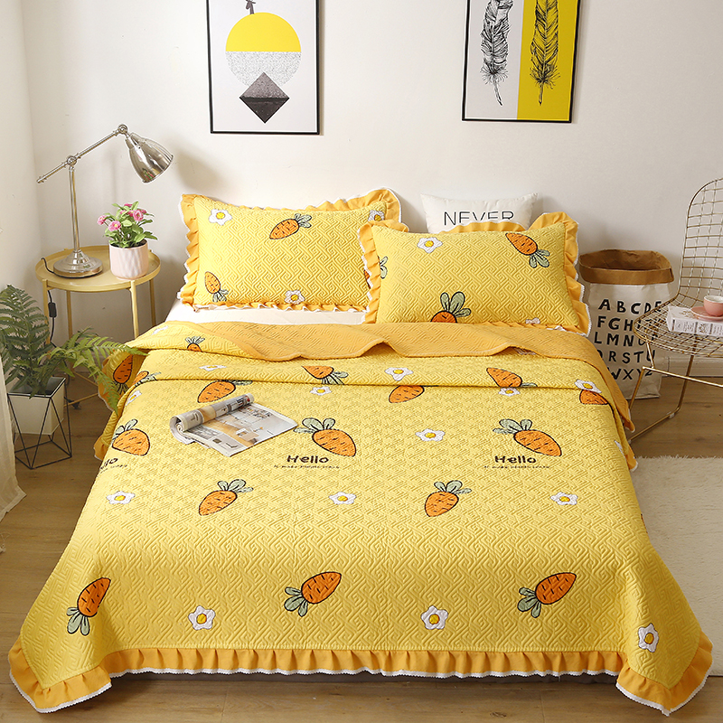【三层复合】全棉夹棉绗缝床盖三件套【全棉/开心萝卜】