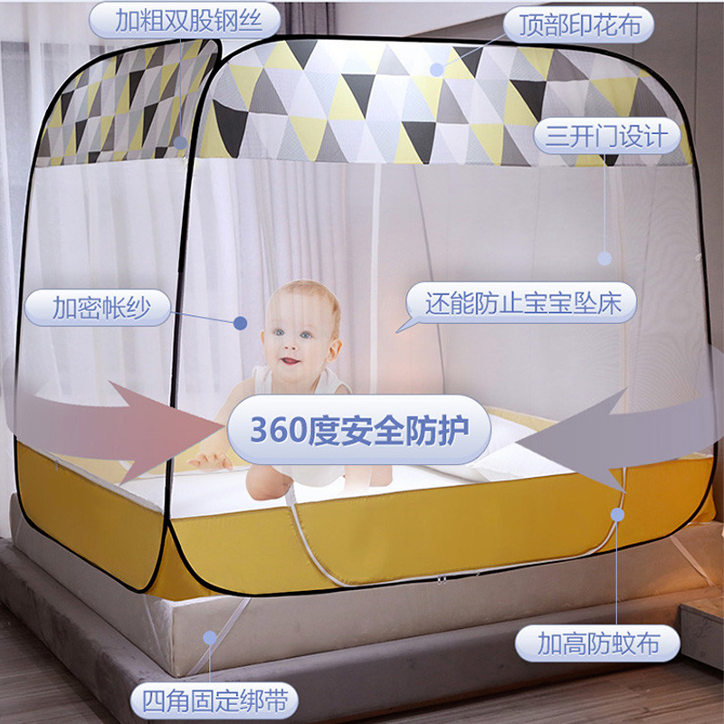 大顶部印花款免安装蚊帐【面料聚酯纤维支架包塑钢丝/简约几何】