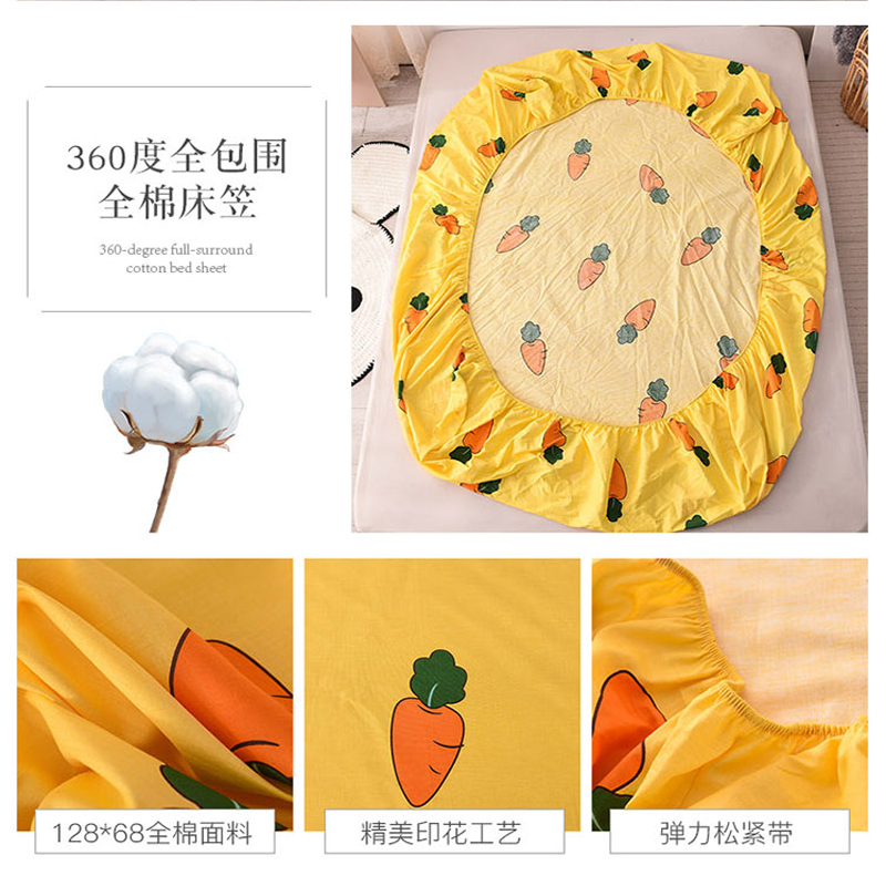 全棉印花小清新床笠【全棉/胡萝卜黄】