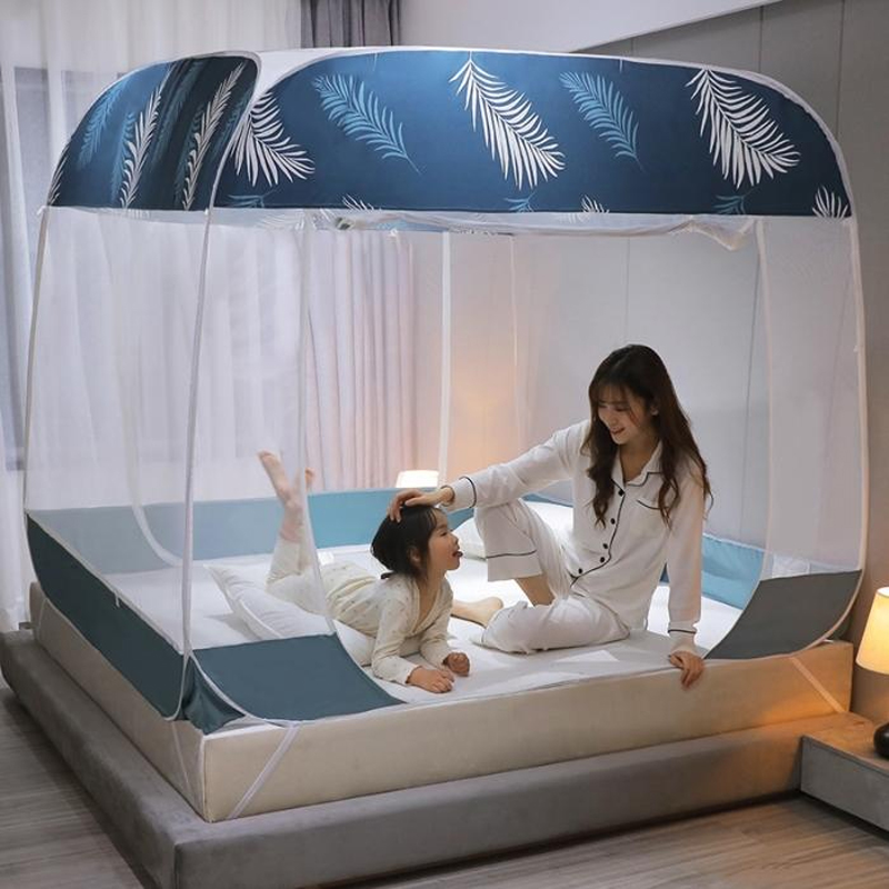 大顶部印花款免安装蚊帐【面料聚酯纤维支架包塑钢丝/蓝叶】
