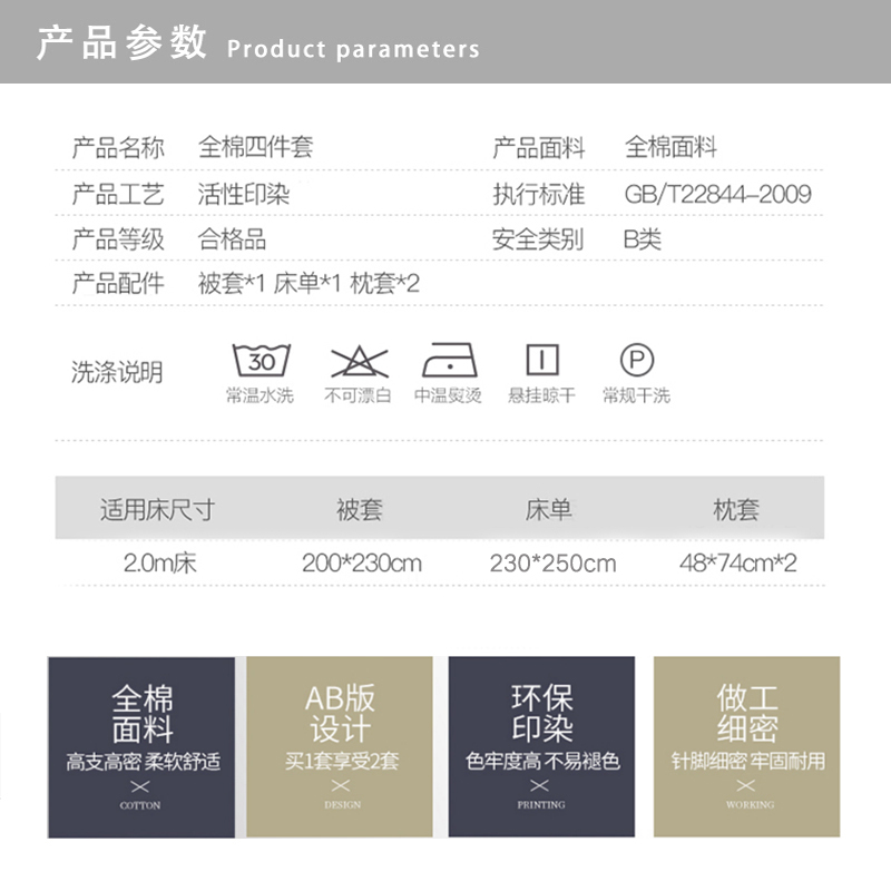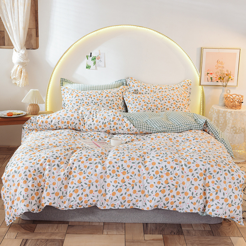 ins清新风AB版简约全棉四件套【全棉/甜蜜橘】