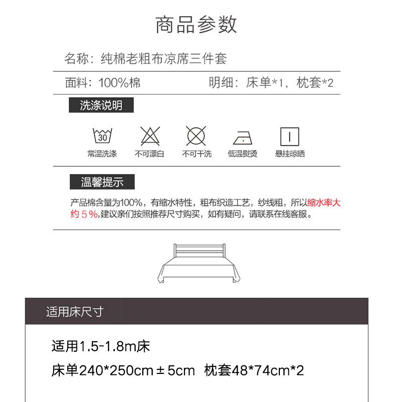 全棉麻空调软凉席老粗布床单三件套【棉/太阳花】