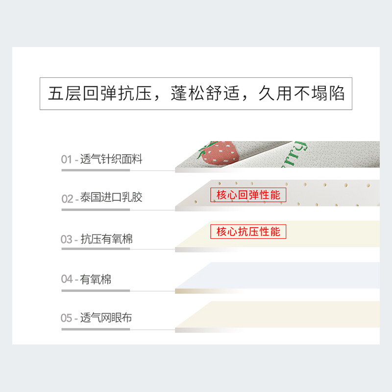 【进口乳胶 不易塌陷】高品质针织乳胶三明治床垫【面料针织棉填充乳胶+硬质棉/乳胶牛奶灰】