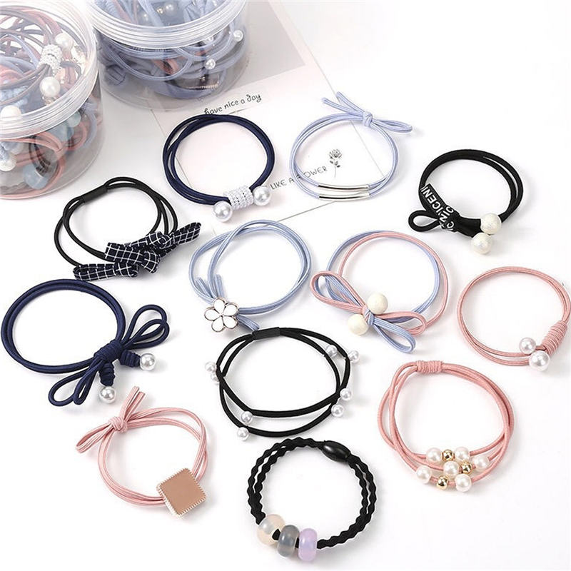 韩式花朵混色发圈12件套【皮筋/混色】