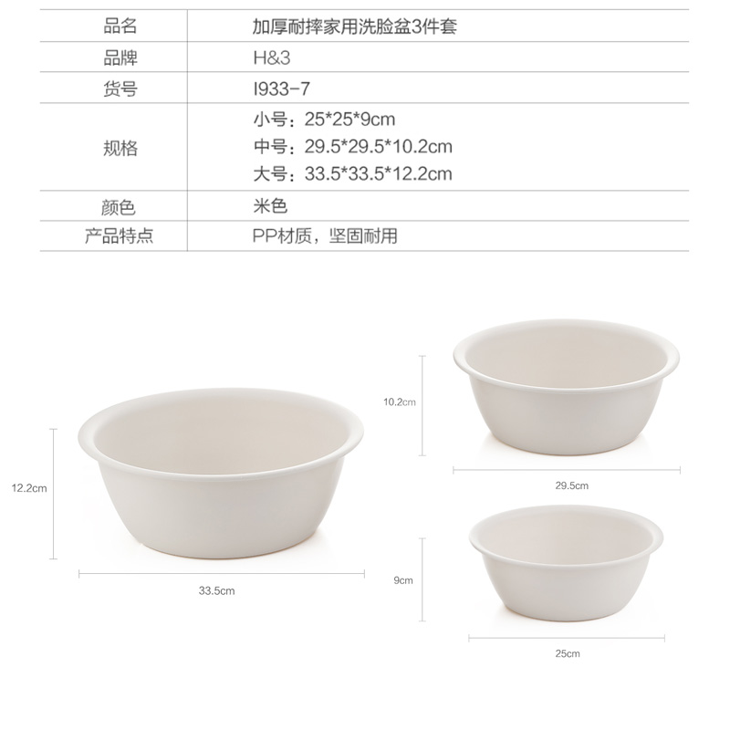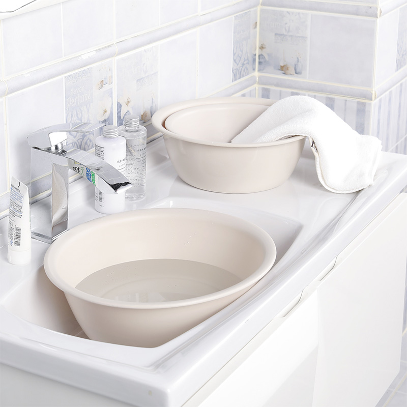 加厚耐摔家用洗脸盆塑料洗衣盆洗菜水盆3件套【PP/米色】