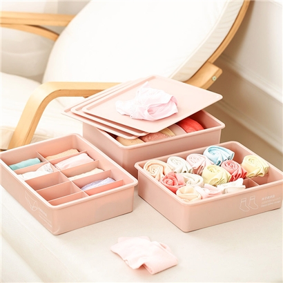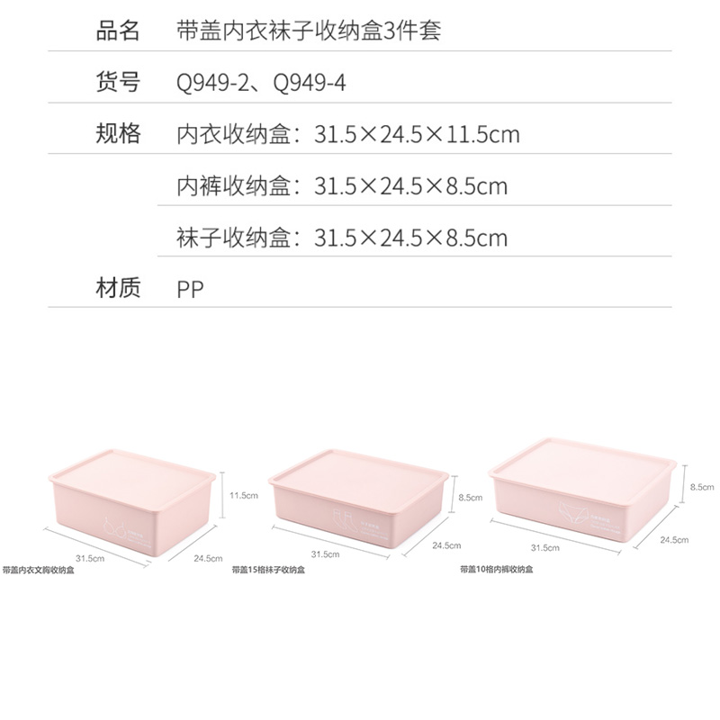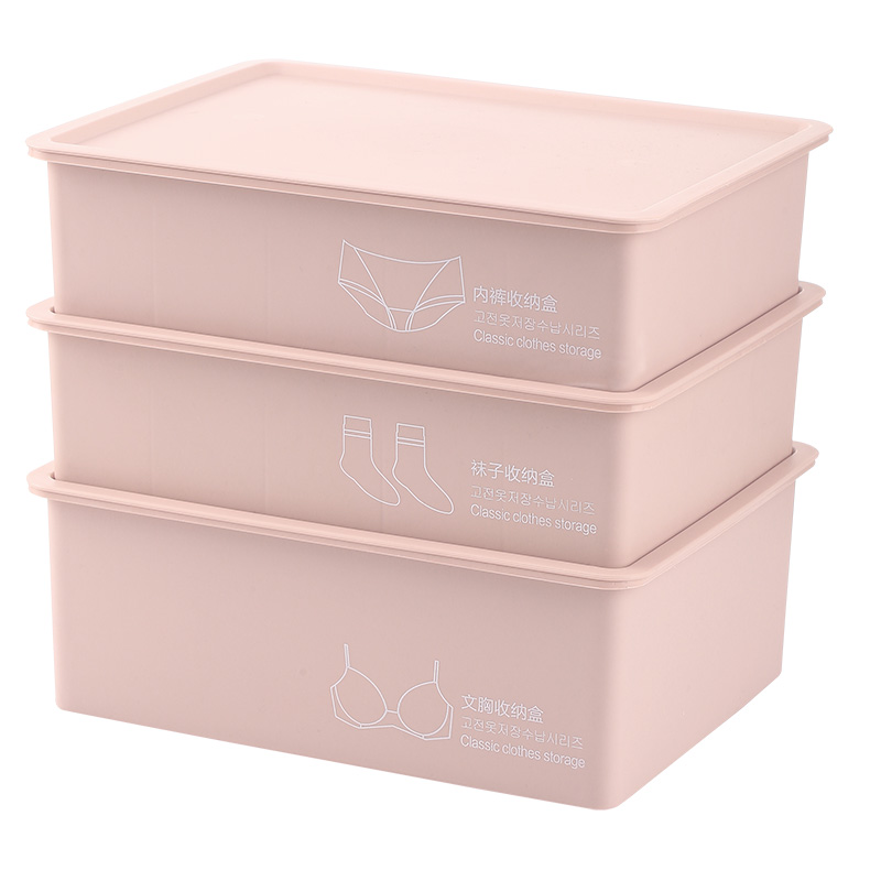 粉色带盖内衣袜子收纳盒3件套【PP/图片色】