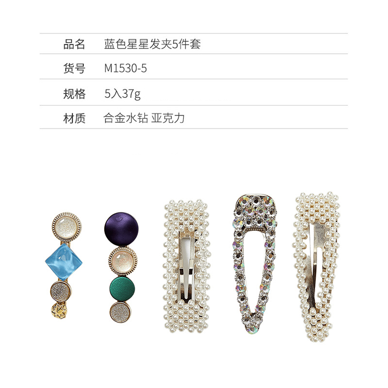 蓝色星星发夹5件套【合金水钻 亚克力/蓝色星星】