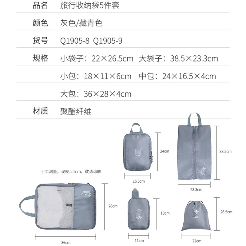 旅行收纳袋5件套【聚酯纤维/图片色】