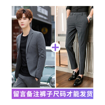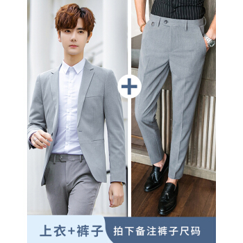 西服>>布彦西服男休闲西装修身韩版男士小西装外套上衣薄款春夏季潮流拼接商务正装套装婚礼新郎伴郎服 浅灰色套装 L