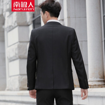 西服>>【正常发货】南极人西服套装男士外套青年韩版修身新郎结婚商务婚礼休闲职业装正装小西装男 二扣黑色西服+西裤.. XL